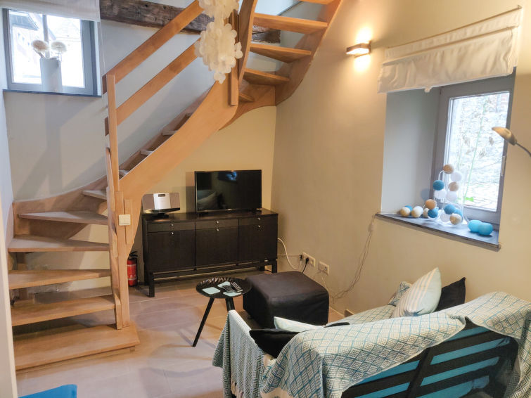 "Le Ti' Bauduin", maisonette 2-kamers 40 m2. Afgeschuinde daken, doelmatig ingericht: woon-/eetkamer met open haard, eethoek, Digitale TV, internationale TV-zenders, Flatscreen TV en stereo-installatie. Keuken (4 keramische glas kookplaten, broodrooster, waterkoker, elektrische koffiemachine, combimagnetron). Douche, aparte WC. Houtverwarming. Bovenverdieping: 1 open groot kamer met afgeschuinde daken met 1 2-pers bed (1 x 160 cm, lengte 200 cm). Uitgang naar het terras. Terras. Terrasmeubelen, barbecue. Ter beschikking: haardroger. Internet (Internet (WiFi), extra). Rookmelders.