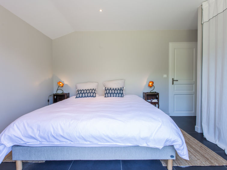 Villa 5-kamers 200 m2 op 2 verdiepingen. Ruim en licht, comfortabel en mooi ingericht: groot woon-/eetkamer 70 m2 met open haard en eettafel. Uitgang naar de tuin, naar het terras. Kleine bureau met TV (Flatscreen TV). 2 kamers, elke kamer heeft 1 2-pers bed (180 cm, lengte 200 cm). Open keuken (oven, afwasmachine, 3 inductiekookplaten, broodrooster, waterkoker, magnetron, diepvriezer, elektrische koffiemachine, pads voor de koffiemachine (Nespresso) extra) met eettafel. Bad/douche, aparte WC, dubbele wastafels. Bovenverdieping: 2 kamers, elke kamer heeft 2 bedden (90 cm, lengte 200 cm), wastafel en douche. Groot galerij. Uitgang naar het balkon. Aparte WC. Verwarming, air-conditioning. 2 balkons, op het zuidwesten gelegen en op het noordoosten gelegen, 2 terrassen gedeeltelijk overdekt, op het zuidwesten gelegen en op het noordoosten gelegen. Terrasmeubelen, barbecue (verrijdbaar), ligstoelen (8). Mooi uitzicht op het meer, het zwembad en het bos. Ter beschikking: wasmachine, droger, strijkijzer, kinderstoel, kinderbed, haardroger. Internet (Internet (WiFi), gratis). Rookvrij huis. Rookmelders. In plaats van een afgesloten slaapkamer bevinden sommige slaapgedeeltes zich in een open ruimte (galerij, nis, etc.). Aanbod door een particulier volgens art. 155, IV van CGI.