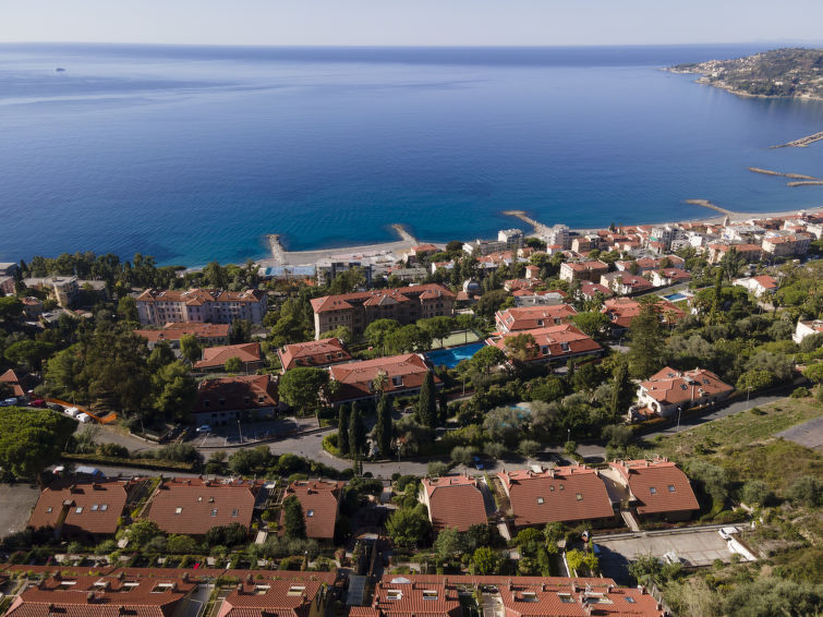 Ospedaletti 5 km van Sanremo: Groot vakantiepark "Le Serre", van 4 verdiepingen. 5 km van het centrum van Sanremo, 8 km van het centrum van Bordighera, 1.2 km van het centrum van Ospedaletti, zonnige, verhoogde ligging tegen een helling, 1.5 km van zee. Voor medegebruik: openluchtzwembad (20 x 9 m, seizoensgebonden beschikbaarheid: 15.Jun. - 15.Sep.). In het huis: lift. Openbare parkeerplaatsen in de straat. Levensmiddelenwinkel, restaurant 600 m, bushalte 50 m, treinstation "Sanremo" 6 km, kiezelstrand 1.5 km. Auto noodzakelijk. Het vakantiecomplex wordt 24 uur per dag bewaakt.