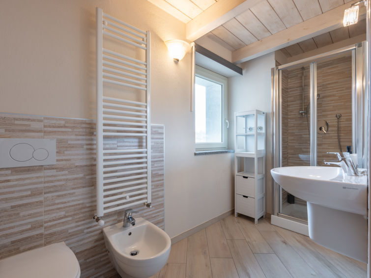 17-kamers cottage op 3 verdiepingen. Smaakvol ingericht: woon-/eetkamer met open haard, eettafel en TV. Uitgang naar het terras. Salon met open haard, aparte WC en TV. Uitgang naar de tuin. Woon-/slaapkamer met 1 2-pers divanbed, eettafel, kookhoek en TV. Uitgang naar de tuin. 1 2-pers. kamer met douche/bidet/WC. Keuken (oven, afwasmachine, 5 kookpitten (vlammen), pizzaoven). Douche/bidet/WC. Bovenverdieping: woon-/slaapkamer met 1 2-pers divanbed, eettafel, kookhoek en TV. Uitgang naar het balkon. Woon-/slaapkamer met 1 2-pers divanbed, eettafel, kookhoek en TV. Uitgang naar het balkon. Woon-/slaapkamer met 1 2-pers divanbed, eettafel, kookhoek en TV. Woon-/slaapkamer met 1 2-pers divanbed, eettafel, kookhoek en TV. 4 2-pers. kamers. Open galerij met afgeschuinde daken met 1 2-pers bed. Open galerij met afgeschuinde daken met 1 2-pers bed. 4 douche/bidet/WC's. Zolderverdieping: (wenteltrap) woon-/eetkamer met 2 2-pers divanbedden, open haard, eettafel en TV. Uitgang naar het terras. 2 2-pers. kamers met afgeschuinde daken, hoogte van het plafond 160 - 270 cm. Kookhoek (4-pits kookplaat, oven, afwasmachine, magnetron, elektrische koffiemachine). Douche/bidet/WC. Gas-verwarming. Verwarming alleen beschikbaar van 15.10. tot 15.04. Balkon, 2 terrassen, gedeeltelijk overdekt. Ter beschikking: wasmachine, kinderbed tot 2 jaar, haardroger. Internet (WiFi, gratis). Maximaal 1 huisdier/hond toegestaan. Rookmelders, brandblusser. IT005060B54CFBNQE4