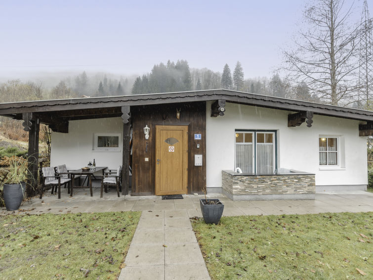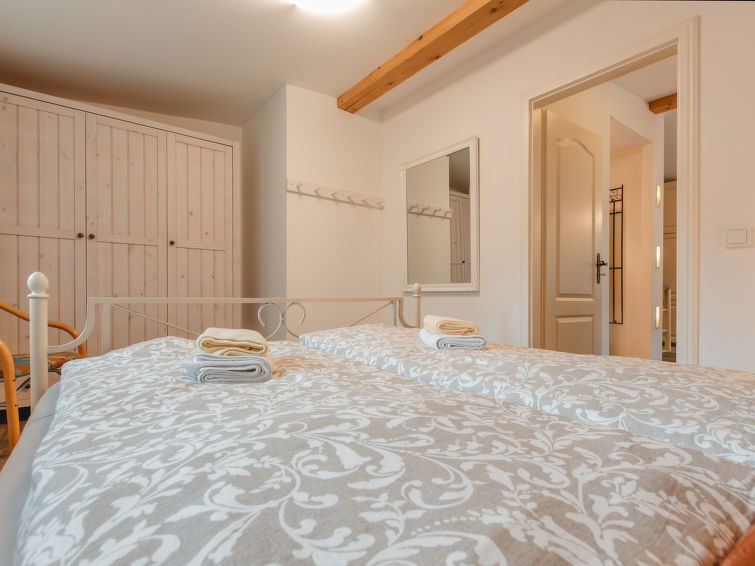 Bungalow 3-kamers 55 m2. Modern en smaakvol ingericht: hal. Woon-/eetkamer met eettafel, Kabel-TV en Flatscreen TV. 1 2-pers. kamer. 1 kleine 2-pers. kamer. Open keuken (oven, afwasmachine, 4 keramische glas kookplaten, broodrooster, waterkoker, magnetron, diepvriezer, elektrische koffiemachine). Douche, aparte WC. Terras. Terrasmeubelen. Mooi uitzicht op de bergen. Ter beschikking: Internet (WiFi, gratis). Rookvrij huis. 2 huisdieren/honden toegestaan. Rookmelders. WiFi werkt soms alleen buiten het huis. Let op: Kinderen en baby's worden beschouwd als een volledig persoon en kunnen niet gratis worden genomen. 50403-000215-2020
