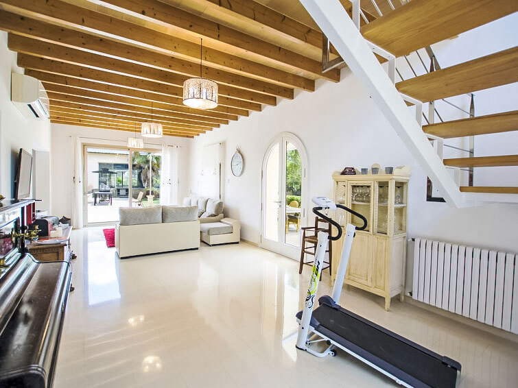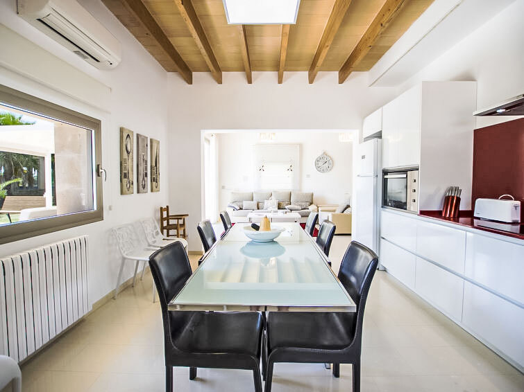 "Son Perot", villa 5-kamers 186 m2 op 2 verdiepingen. Het objekt is geschikt voor 9 volwassenen. Ruim en licht, zeer mooi en stijlvol ingericht: groot, open woonkamer met schuifdeur, panoramavenster met Sat-TV, Flatscreen TV, air-conditioning en heteluchtverwarming. Uitgang naar de zitplaats in de tuin, naar het zwembad. 1 groot 2-pers. kamer met panoramavenster met 1 2-pers bed (150 cm), bad/douche/WC, air-conditioning en heteluchtverwarming. Uitgang naar de zitplaats in de tuin. Open keuken (oven, afwasmachine, 3 keramische glas kookplaten, magnetron, diepvriezer, elektrische koffiemachine) met eettafel, air-conditioning en heteluchtverwarming. Bad/WC. Bovenverdieping: 2 groot 2-pers. kamers met panoramavenster, elke kamer heeft 1 2-pers bed, bad/douche/WC, air-conditioning en heteluchtverwarming. 1 groot 2-pers. kamer met panoramavenster met 3 bedden (90 cm), bad/douche/WC, air-conditioning en heteluchtverwarming. Groot tuin, gazon, prieel. Terrasmeubelen, barbecue, ligstoelen. Uitzicht op de tuin en het landschap. Ter beschikking: wasmachine, strijkijzer, haardroger. Internet (WiFi, gratis). Parkeerplaats (omheind). Geschikt voor families. ETV/5876