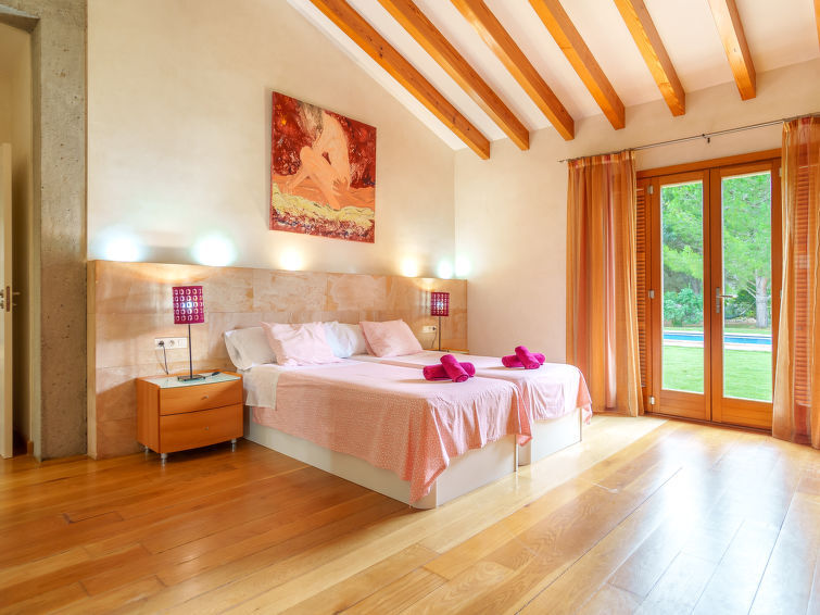 Zeer groot, comfortabele villa "La Forca", van 2 verdiepingen. Buiten de plaats, 1 km van het centrum van Santa Margalida, rustige, zonnige ligging, 11 km van zee, te midden van groen. Voor alleengebruik: wild terrein 14.000 m2 (omheind), groot tuin met gazon en bomen, openluchtzwembad (12 x 6 m, 100 - 180 cm diepte, seizoensgebonden beschikbaarheid: 01.Jan. - 31.Dec.). Kinderzwembad, buitendouche, tafeltennis, patio, prieel, prieel, tuinmeubelen, barbecue, grill, onderhoud zwembad door de eigenaar/tuinman. In het huis: internetaansluiting, Internet (WiFi), bergruimte voor fietsen, air-conditioning. Parkeerplaats bij het huis op het terrein. Supermarkt 1.4 km, restaurant 1.2 km, bar 1.2 km, bakkerij 1.5 km, centrum te voet bereikbaar in 20 minuten, bushalte "Plaça de la Vila, Santa Margalid" 1.2 km, treinstation "Muro" 8 km, veerboot "Port d'Alcúdia" 18.2 km, zandstrand "Can Picafort" 11 km. Jachthaven 11 km, golfterrein (18 holes) 22 km, fietspad 500 m. Attracties in de buurt: Can Picafort-Son Serra-Santa Margarita, Palma de Mallorca 53 km, Hidropark Aquatic Park 20 km, Mallorca Fashion Outlet % Cinemas 45 km. Wandelgebied Finca Pública Son Real, Parc Natural de Farrutx, S'Albufera de Mallorca. Auto noodzakelijk. Het objekt is geschikt voor 10 volwassenen groepen jongeren uitsluitend op aanvraag. Dieren in de buurt. Vliegveld 57 km van het huis.