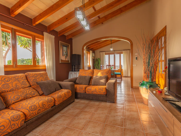 "Sa Tanca", villa 4-kamers 155 m2. Het objekt is geschikt voor 8 volwassenen. Ruim en licht, doelmatig en comfortabel ingericht: hal. Uitgang naar de zitplaats in de tuin. Groot, open woon-/eetkamer met panoramavenster met 2 slaapplaatsen (2 x 90 cm, lengte 190 cm), eettafel, Digitale TV, Flatscreen TV en stereo-installatie. Uitgang naar de zitplaats in de tuin. 1 2-pers. kamer, venster naar het binnenplaats met 2 bedden (90 cm, lengte 200 cm), air-conditioning en heteluchtverwarming. 1 2-pers. kamer, venster naar het binnenplaats met 2 bedden (90 cm, lengte 200 cm), air-conditioning en heteluchtverwarming. 1 groot 2-pers. kamer, venster naar het binnenplaats met 1 2-pers bed (150 cm, lengte 200 cm), bad/bidet/WC, air-conditioning en heteluchtverwarming. Groot keuken (oven, afwasmachine, 3 keramische glas kookplaten, magnetron, diepvriezer, elektrische koffiemachine) met eettafel. Uitgang naar het balkon. Bad/bidet/WC. Ruime zithoek in de tuin, prieel. Terrasmeubelen, barbecue, ligstoelen (8), loggia. Mooi panoramazicht op het landschap en de plaats. Ter beschikking: wasmachine, strijkijzer, kinderstoel, kinderbed tot 2 jaar, haardroger. Internet (WiFi, gratis). Garage op het terrein bij het huis. Geschikt voor families. Maximaal 1 huisdier/hond toegestaan. ETV15026