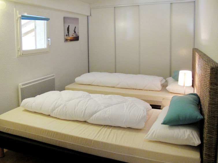 "Les Rives du Lac (LCA225)", appartement 4-kamers 49 m2, op de bovenverdieping. Doelmatig en modern ingericht: woon-/slaapkamer met 1 2-pers divanbed (135 cm), eettafel en Sat-TV. 1 kamer met 1 2-pers bed. 1 kamer met 2 bedden. 1 kamer met 1 2-pers bed en douche. Open keuken (afwasmachine, 4 keramische glas kookplaten, broodrooster, waterkoker, magnetron, diepvriezer, elektrische koffiemachine). Aparte WC, bad of douche. Elektrische verwarming. Balkon. Balkonmeubilair. Ter beschikking: Internet (Internet (WiFi), extra). Let op: niet rokers woning. Maximaal 1 huisdier/hond toegestaan. Rookmelders, geen lift.