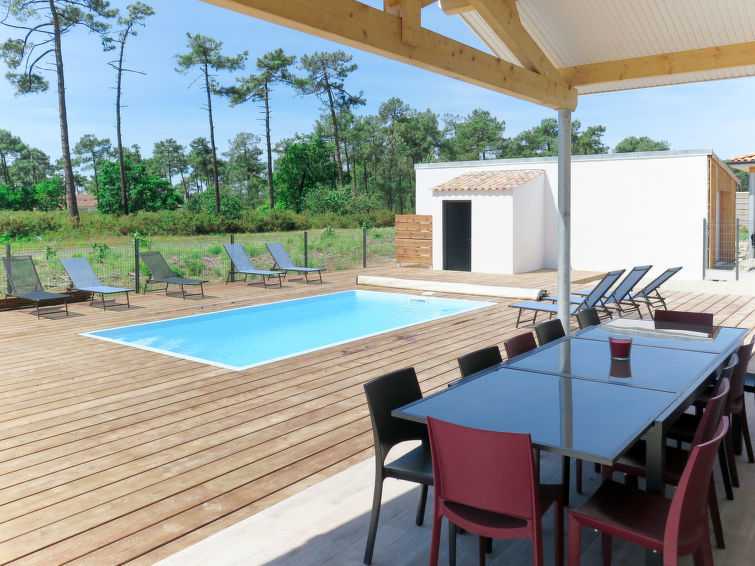 Moderne, mooi, comfortabele villa "Les Alyzés", bouwjaar 2019. 2.5 km van het centrum van Montalivet, 9 km van het centrum van Vendays, 85 km van het centrum van Bordeaux, in een woonwijk, 1.5 km van zee. Voor alleengebruik: terrein 600 m2 (omheind), openluchtzwembad (7 x 4 m, 140 cm diepte, seizoensgebonden beschikbaarheid: 01.Mei.-31.Okt.) met trap en oprolbaar afdekscherm. Buitendouche, terras, parkeerplaats (voor 3 auto's) bij het huis op het terrein. Supermarkt 2.5 km, zandstrand 1.5 km. Fietspad 50 m. De eigenaar accepteert geen groepen. De omgeving is gevoelig voor geluidsoverlast. Gelieve geen lawaai te maken en de rust te bewaren.