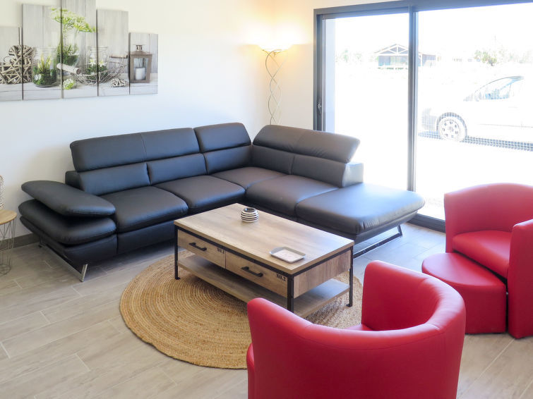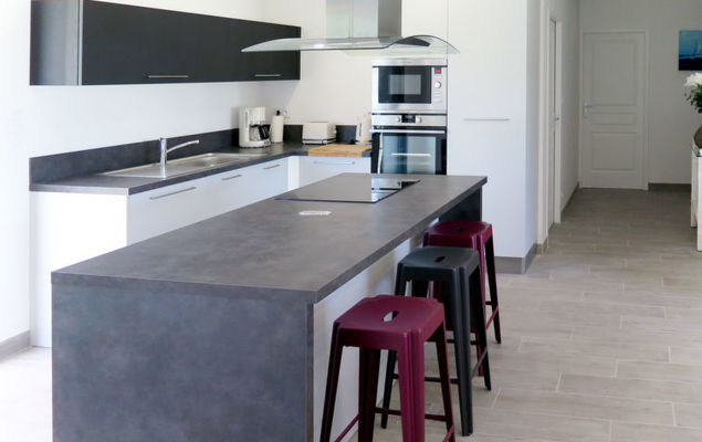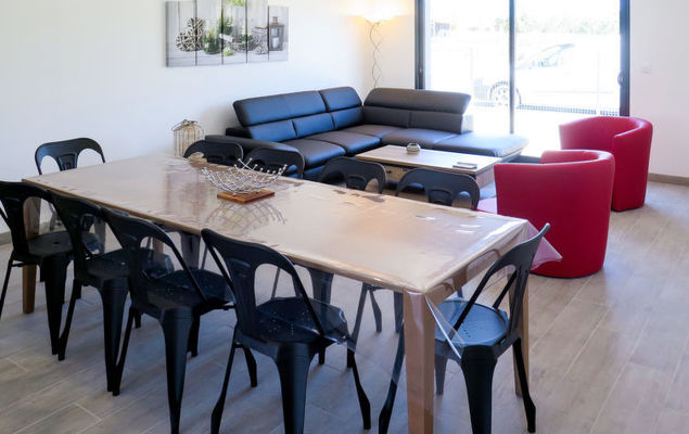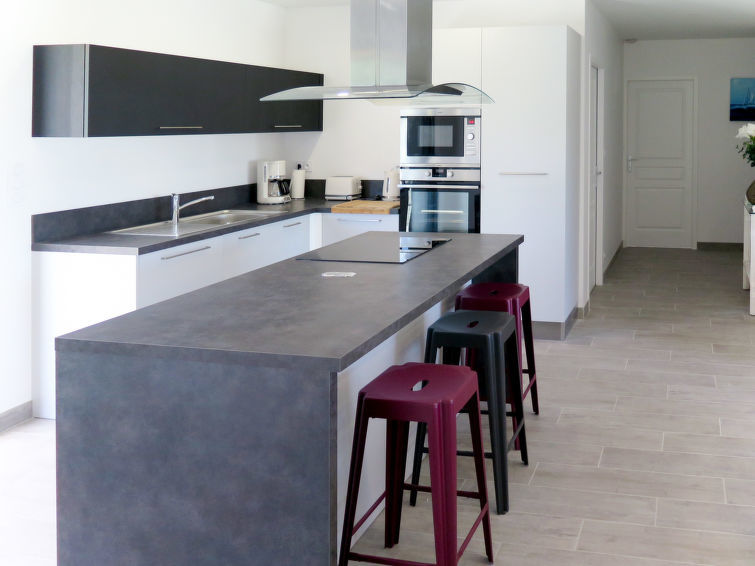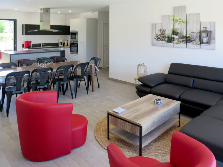 "Les Alyzés (MVT240)", villa 6-kamers 150 m2. Het objekt is geschikt voor 8 volwassenen + 4 kinderen. Licht, modern en stijlvol ingericht: groot woon-/eetkamer met schuifdeur, panoramavenster met eettafel en Sat-TV (Flatscreen TV). Uitgang naar het terras. 4 kamers, elke kamer heeft 1 2-pers bed (160 cm, lengte 200 cm), douche/WC. Uitgang naar de tuin. 1 kinderkamer met 2 x 2 stapelbedden (90 cm, lengte 190 cm), douche/WC. Uitgang naar de tuin. Groot, open keuken (oven, afwasmachine, 3 inductiekookplaten, broodrooster, waterkoker, magnetron, elektrische koffiemachine) met bar. Uitgang naar het terras. Aparte WC. Elektrische verwarming, air-conditioning. Groot terras gedeeltelijk overdekt. Terrasmeubelen, barbecue (verrijdbaar), ligstoelen (8), bergruimte. Ter beschikking: wasmachine, strijkijzer, kinderstoel, kinderbed (extra). Internet (Internet (WiFi), gratis). Let op: geschikt voor families. Rookvrij huis. Rookmelders.