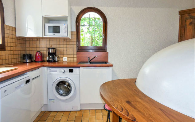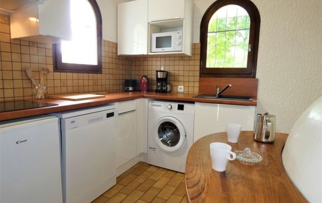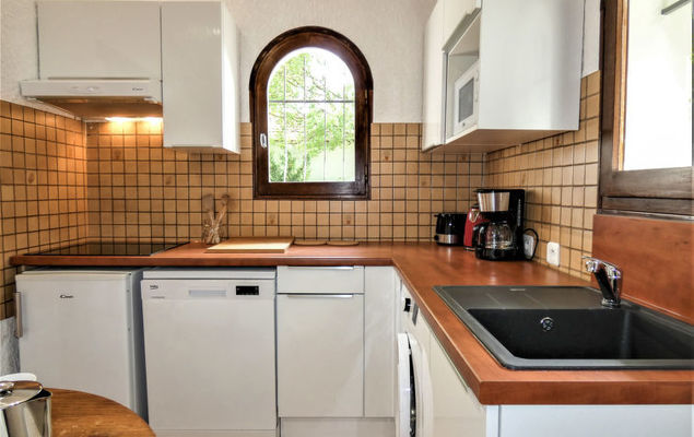 Huis 2-kamers 45 m2. Eenvoudig en doelmatig ingericht: woon-/eetkamer met schuifdeur met 1 2-pers divanbed, Sat-TV en internationale TV-zenders (Flatscreen TV), stereo-installatie. Uitgang naar de tuin, naar het terras. 1 kleine kamer met 1 2-pers bed (140 cm, lengte 190 cm). Open keuken (4-pits kookplaat, mini-oven, afwasmachine, magnetron). Douche/WC. Elektrische verwarming. Terras, op het zuiden gelegen. Terrasmeubelen, barbecue, ligstoelen (2). Ter beschikking: wasmachine. Internet (Internet (WiFi), gratis). Let op: maximaal 1 huisdier/hond toegestaan. Rookmelders.