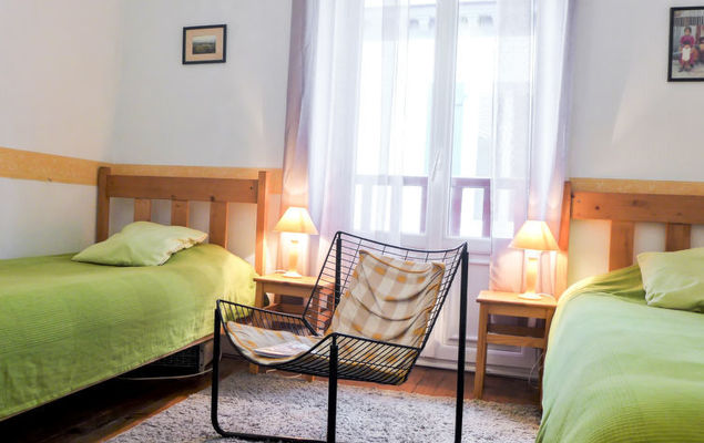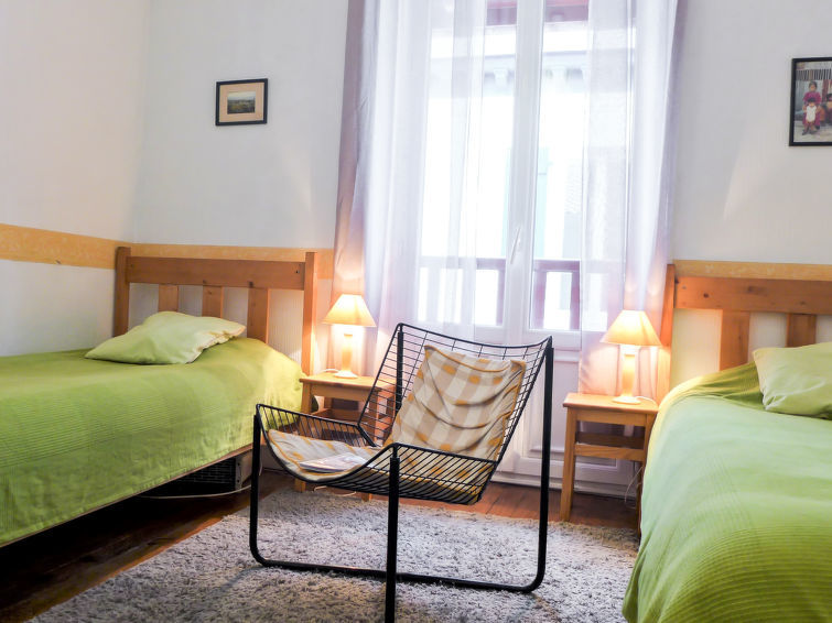 Appartement 3-kamers 50 m2 op de 2e verdieping. Eenvoudig en mooi ingericht: woon-/eetkamer met TV (Flatscreen TV). Uitgang naar het balkon, op het zuiden en op het westen. 1 kamer met 2 bedden (90 cm, lengte 190 cm). 1 kamer met 1 2-pers bed (1 x 160 cm, lengte 200 cm). Keuken (oven, 4 inductiekookplaten, broodrooster, waterkoker, magnetron, diepvriezer, elektrische koffiemachine). Douche, aparte WC. Elektrische verwarming. Parketvloeren. Klein balkon. Balkonmeubilair. Uitzicht op het dorp. Ter beschikking: wasmachine, strijkijzer, haardroger. Internet (Internet (WiFi), extra). Let op: woning aan de straatzijde. Rookmelders. 64122172095PN