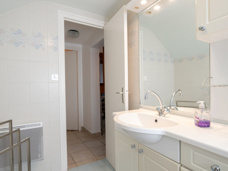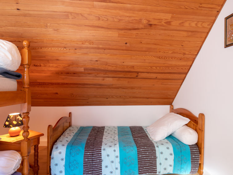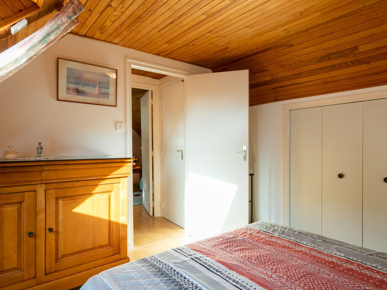 Huis 3-kamers 60 m2 op 2 verdiepingen. Comfortabel ingericht: woon-/eetkamer met eettafel, Sat-TV, Flatscreen TV, CD-speler, stereo-installatie en DVD. Kookhoek (4-pits kookplaat, oven, afwasmachine, diepvriezer, elektrische koffiemachine). Badkamer, bidet, aparte WC. Elektrische verwarming. Bovenverdieping: 1 kamer met afgeschuinde daken met 1 2-pers bed (1 x 140 cm, lengte 190 cm). 1 kamer met afgeschuinde daken met 1 bed (90 cm, lengte 190 cm), 1 x 2 stapelbedden (90 cm, lengte 190 cm), aparte WC. Terras. Terrasmeubelen. Ter beschikking: wasmachine, strijkijzer, kinderstoel, kinderbed, haardroger. Internet (Internet (WiFi), gratis). Parkeerplaats (omheind).