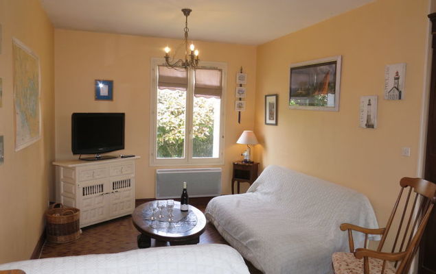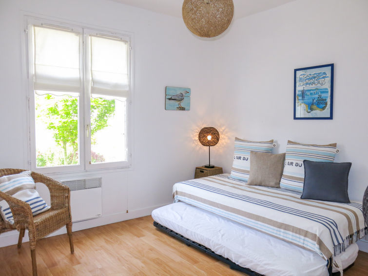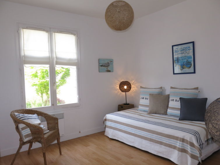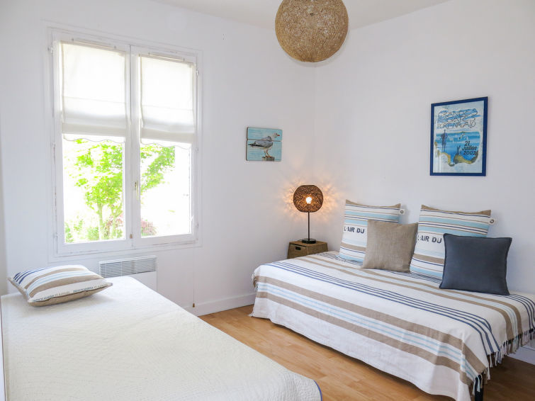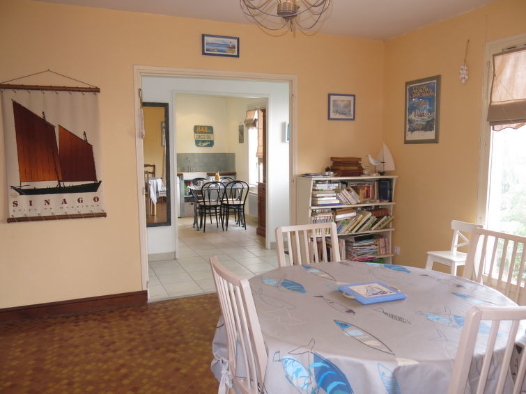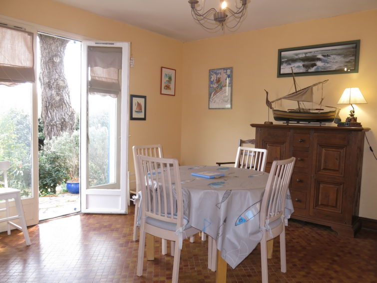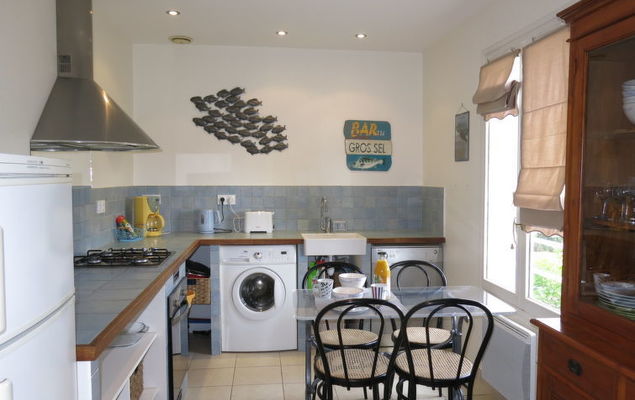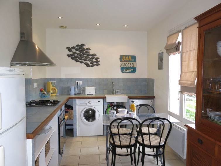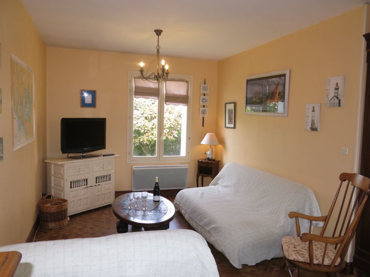 Huis 3-kamers 80 m2. Mooi ingericht: woon-/eetkamer met TV. Uitgang naar de tuin. 1 kamer met 1 2-pers bed (140 cm, lengte 190 cm). 1 kamer met 1 uitschuifbaar bed (2 x 90 cm, lengte 190 cm). Keuken (oven, afwasmachine, 4 kookpitten (vlammen), broodrooster, waterkoker, magnetron, diepvriezer, elektrische koffiemachine) met eettafel. Douche, aparte WC. Elektrische verwarming. Ter beschikking: wasmachine. Let op: rookmelders.