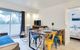 Appartement 3-kamers 40 m2 op de 1e verdieping. Het objekt is geschikt voor 2 volwassenen + 2 kinderen. Volledig gerenoveerd in 2019, comfortabel ingericht: woon-/eetkamer met TV (Flatscreen TV). Uitgang naar het balkon. 1 kamer met 1 x 2 stapelbedden (90 cm, lengte 190 cm). 1 kamer met 1 2-pers bed (1 x 160 cm, lengte 200 cm). (afwasmachine, 3 inductiekookplaten, magnetron). Douche, aparte WC. Elektrische verwarming. Balkon 6 m2. Balkonmeubilair. Uitzicht op de plaats. Ter beschikking: wasmachine, strijkijzer, kinderbed tot 2 jaar, haardroger. Internet (Internet (WiFi), gratis). Parkeerplaats nr. 18.