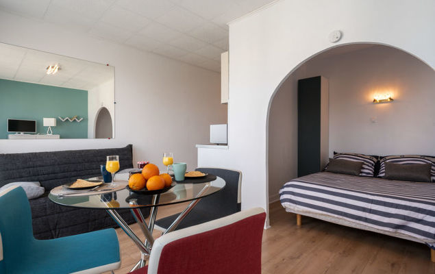 Studio 1-kamer 25 m2. Volledig gerenoveerd in 2019, comfortabel ingericht: woon-/eetkamer met TV (Flatscreen TV), DVD. Uitgang naar het balkon. Slaapnis met 1 2-pers bed (1 x 140 cm, lengte 190 cm). Kleine keuken in de hal (2-pits kookplaat, elektrische koffiemachine, pads voor de koffiemachine (Dolce Gusto) extra, combimagnetron). Douche/WC. Elektrische verwarming. Balkon 6 m2. Balkonmeubilair. Zijdelings uitzicht op zee. Ter beschikking: wasmachine. Internet (Internet (WiFi), gratis). Parkeerplaats nr. 18. 1 klein huisdier/hond toegestaan.