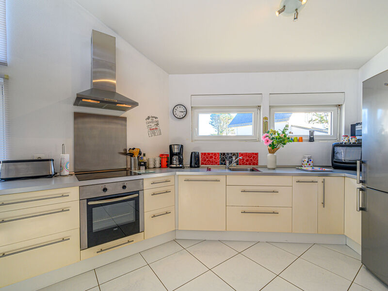 Kleine eengezinswoning "Ker Penthièvre". Aan de rand van de plaats, 200 m van zee, 200 m van het strand, aan een doodlopende weg. Openbare parkeerplaatsen in de straat. Winkel 4 km, levensmiddelenwinkel 4 km, restaurant 4 km, bakkerij, bushalte 500 m, zandstrand "Penthièvre" 200 m, overdekt zwembad 5 km, thermaalbad "Thalassothérapie de Quiberon" 5 km. Surfschool 5 km, zeilschool 5 km. Attracties in de buurt: Thalasso 10 km, Alignements de Carnac 11 km, La Trinité sur Mer 19 km, Auray 20 km, Vannes 37 km, Belle-Ile-en-Mer. De sleuteloverdracht vindt plaats bij het agentschap Interhome in Quiberon, 10 km.