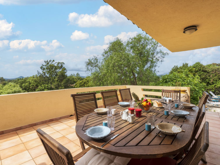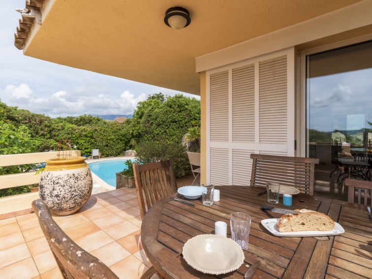 Eengezinswoning van 2 verdiepingen. In de wijk Marina Di Fiori, aan de rand van de plaats, 3.5 km van het centrum van Porto-Vecchio, in een woonwijk, 600 m van zee, 600 m van het strand. Voor medegebruik: openluchtzwembad hoekig omheind (25 x 12 m, 100 - 250 cm diepte, seizoensgebonden beschikbaarheid: 15.Mei. - 15.Sep.). Douche/WC bij het zwembad, onderhoud zwembad door de eigenaar/tuinman. Voor alleengebruik: terrein (omheind), tuin op verschillende niveaus, openluchtzwembad niervormig, geen inkijk (10 x 3 m, 140 - 190 cm diepte, seizoensgebonden beschikbaarheid: 01.Jun. - 01.Okt.) met alarminstallatie. Jeu de boules, onderhoud zwembad door de eigenaar/tuinman. In het complex: restaurant. Parkeerplaats (voor 3 auto's). Winkel 1 km, supermarkt 1 km, restaurant 600 m, bushalte "Porto-Vecchio Centre" 700 m, zandstrand "Plage de Cala Verde" 2 km. Jachthaven 3.5 km, golfterrein (9 holes) 10 km. Attracties in de buurt: Centre ville de Porto-Vecchio 3.5 km, Plage de Santa Giulia 11 km, Plage de Palombaggia 13 km, Bonifacio 30 km. Bekende meren kunnen gemakkelijk worden bereikt: Lac de l'Ospédale 20 km. Wandelgebied Aiguilles de Bavella 48 km. Auto noodzakelijk. Privé aanlegsteiger voor een boot, op aanvraag.