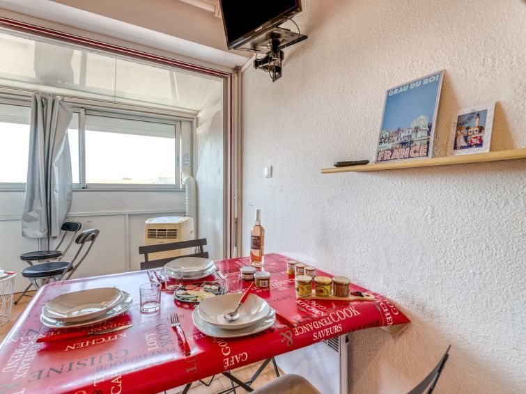 Residentie "Le Marlin", van 3 verdiepingen. In de wijk le Palais de la Mer, 800 m van zee, 800 m van het strand. Voor medegebruik: tennisbaan, jeu de boules, parkeerplaats (beperkt aantal). Winkel 200 m, levensmiddelenwinkel 50 m, supermarkt 150 m, winkelcentrum 350 m, restaurant, bar, café 50 m, bushalte "HLM" 550 m, treinstation 2 km, zandstrand "Plage Nord", openluchtzwembad 2.2 km, thermaalbad "Thalazur Port Camargue" 4.6 km. Jachthaven 2.3 km, midgetgolf 700 m, manege 2 km, kinderspeelplaats 700 m. Attracties in de buurt: Casino Flamingo 350 m, Seaquarium 1.4 km, Arènes du Grau du roi 3.2 km. Wandelgebied P13. De sleuteloverdracht vindt plaats bij het agentschap Interhome in Port Camargue, 2 km. Vliegveld 24 km van het huis.