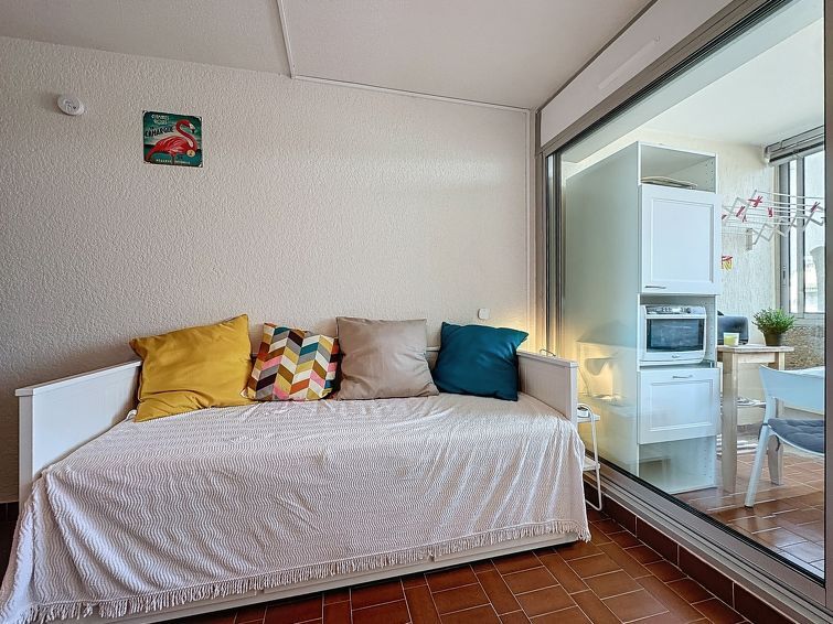 Residentie "Le Quai aux Fleurs". In de wijk Plage Sud, 500 m van zee, 500 m van het strand. Voor medegebruik: openluchtzwembad rond (80 - 240 cm diepte, seizoensgebonden beschikbaarheid: 15.Jun. - 15.Sep.). Kinderzwembad, barbecue, parkeerplaats (beperkt aantal), openbare parkeerplaatsen 150 m. Levensmiddelenwinkel 400 m, supermarkt 3 km, restaurant 400 m, bushalte "Quai aux Fleurs" 10 m, treinstation 3.5 km, zandstrand 450 m, thermaalbad "Thalazur" 800 m. Jachthaven 500 m, jachthaven 30 m, zeilschool 2 km, tennis 1.5 km. Attracties in de buurt: Casino Flamingo 2 km, Seaquarium 2 km, les arènes du Grau du Roi 3 km, Aigues-Mortes 10 km, La grande Motte 15 km, Nîmes 52 km. Wandelgebied La réserve naturelle de Camargue. De sleuteloverdracht vindt plaats bij het agentschap Interhome in Port Camargue. Vliegveld 24 km van het huis.