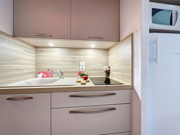 Appartement 1-kamer 26 m2 op de 1e verdieping. Studio met 1 2-pers divanbed (140 cm, lengte 190 cm), 1 2-pers opklapbed (2 x 80 cm, lengte 200 cm), kookhoek, TV en Flatscreen TV. Uitgang naar de loggia, op het zuiden en op het oosten. Kleine keuken in de hal (2 inductiekookplaten, broodrooster, waterkoker, diepvriezer, elektrische koffiemachine, combimagnetron). Douche/WC. Elektrische verwarming. Balkonmeubilair, loggia. Ter beschikking: wasmachine. Internet (WiFi, gratis). Parkeerplaats (1 Auto). Niet rokers woning. Maximaal 1 klein huisdier/hond toegestaan. Rookmelders, geen lift. Aanbod door een particulier volgens art. 155, IV van CGI. 30133000994BN