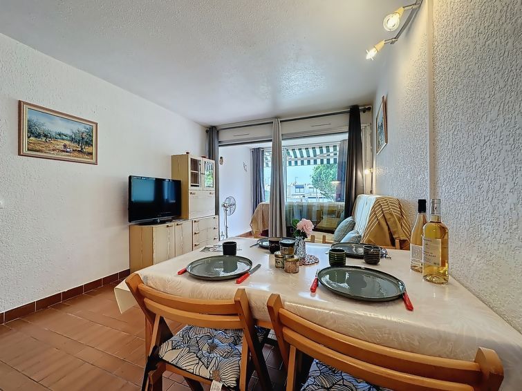 Residentie "Le Quai aux Fleurs". In de wijk Plage Sud, 500 m van zee, 500 m van het strand. Voor medegebruik: openluchtzwembad rond (80 - 240 cm diepte, seizoensgebonden beschikbaarheid: 15.Jun. - 15.Sep.). Kinderzwembad, barbecue, parkeerplaats (beperkt aantal), openbare parkeerplaatsen 150 m. Levensmiddelenwinkel 400 m, supermarkt 3 km, restaurant 400 m, bushalte "Quai aux Fleurs" 10 m, treinstation 3.5 km, zandstrand 450 m, thermaalbad "Thalazur" 800 m. Jachthaven 500 m, jachthaven 30 m, zeilschool 2 km, tennis 1.5 km. Attracties in de buurt: Casino Flamingo 2 km, Seaquarium 2 km, les arènes du Grau du Roi 3 km, Aigues-Mortes 10 km, La grande Motte 15 km, Nîmes 52 km. Wandelgebied La réserve naturelle de Camargue. De sleuteloverdracht vindt plaats bij het agentschap Interhome in Port Camargue. Vliegveld 24 km van het huis.