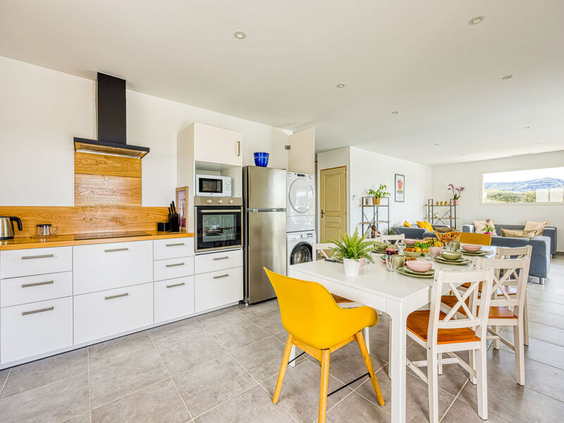 "Villa Hestia", huis 4-kamers 107 m2. Het objekt is geschikt voor 4 volwassenen + 4 kinderen. Zeer comfortabel en modern ingericht: woon-/eetkamer met TV (Flatscreen TV). Uitgang naar het terras, naar het zwembad. 1 kamer met 2 x 2 stapelbedden (90 cm, lengte 190 cm). 1 kamer met 1 2-pers bed (180 cm, lengte 200 cm). 1 kamer met 1 2-pers bed (180 cm, lengte 200 cm). Open keuken (oven, afwasmachine, 4 keramische glas kookplaten, broodrooster, waterkoker, magnetron, diepvriezer, elektrische koffiemachine). Badkamer, douche, 2 aparte WC's. Elektrische verwarming, air-conditioning. Groot terras 45 m2. Terrasmeubelen, barbecue, ligstoelen (3). Mooi uitzicht op het landschap en de plaats. Ter beschikking: wasmachine, droger, strijkijzer, kinderstoel, kinderbed tot 2 jaar, haardroger. Internet (Internet (WiFi), gratis). Parkeerplaats (omheind, 2 Auto's). Rookvrij huis. Rookmelders. Het zwembad genoemd in de beschrijving is voor privé gebruik. Aanbod door een particulier volgens art. 155, IV van CGI.