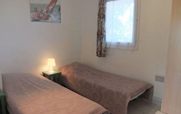 Appartement 3-kamers 45 m2, op de begane grond. Woon-/eetkamer met 1 divanbed (130 cm, lengte 190 cm), TV (Flatscreen TV). Uitgang naar het terras. 1 kamer met 2 bedden (80 cm, lengte 190 cm). 1 kamer met 1 2-pers bed (140 cm, lengte 190 cm). Kookhoek (4-pits kookplaat, magnetron, diepvriezer, elektrische koffiemachine). Douche/WC. Elektrische verwarming. Klein terras gedeeltelijk overdekt, zithoek in de tuin 15 m2, op het zuidoosten gelegen. Terrasmeubelen, elektrische barbecue. Ter beschikking: wasmachine. Internet (Internet (WiFi), extra). Parkeerplaats. Let op: maximaal 1 huisdier/hond toegestaan. Rookmelders.