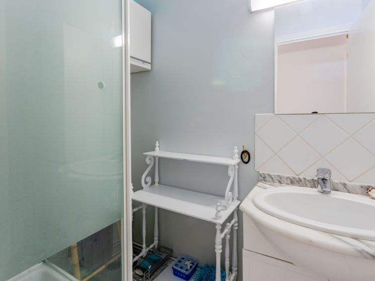 Appartement 2-kamers 45 m2, op verhoogde begane grond. 1 kamer met 1 2-pers divanbed (1 x 130 cm, lengte 190 cm), 1 x 1 stapelbedden (90 cm, lengte 190 cm). Woon-/eetkamer met 1 2-pers divanbed (1 x 140 cm, lengte 190 cm), eettafel en TV (Flatscreen TV). Keuken (mini-oven, oven, 2 keramische glas kookplaten, broodrooster, waterkoker, magnetron, elektrische koffiemachine) met kleine eettafel. Badkamer, aparte WC. Uitzicht in de verte op zee. Ter beschikking: Internet (WiFi, extra). Niet rokers woning. Maximaal 1 huisdier/hond toegestaan. Aanbod door een particulier volgens art. 155, IV van CGI.