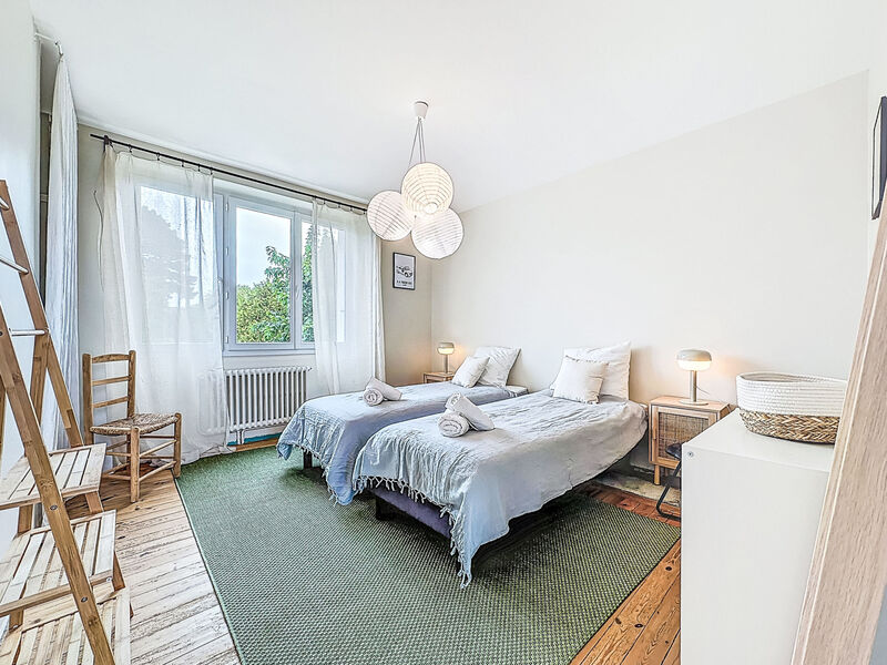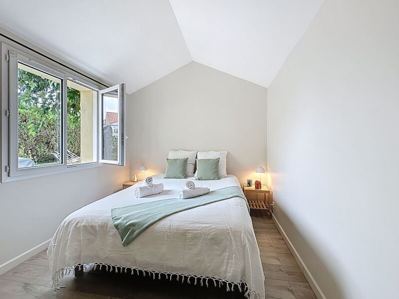 Groot, mooi rijtjeshuis "La Nero", van 2 verdiepingen, gerenoveerd in 2025. In het centrum van Pornic, perfecte locatie: in het centrum en toch rustig gelegen, 800 m van zee, 1 km van het strand, op het zuiden. Voor alleengebruik: groot, verzorgde tuin 700 m2 (omheind). Terras (40 m2), tuinmeubelen, barbecue, openbare parkeerplaatsen in de straat. Supermarkt 100 m, restaurant 600 m, bakkerij 50 m, café 30 m, fietsverhuur 700 m, centrum te voet bereikbaar in 5 minuten, bushalte "Gare de Pornic" 600 m, treinstation "Pornic" 600 m, zandstrand "Plage de la Source" 1 km, overdekt zwembad 2 km, thermaalbad "Alliance Pornic Thalasso & Spa" 1 km. Jachthaven 600 m, golfterrein (18 holes) 3 km, zeilschool 2 km, midgetgolf 3 km, manege 4 km, sportcentrum 2 km, wandelroutes 1 km vanaf het huis. Attracties in de buurt: Faïencerie de Pornic 2 km, Pornic Aventure Accrobranche 3 km, Legendia Parc 20 km, Planète Sauvage 30 km, Les Machines de l'Ile de Nantes 49 km, Ile de Noirmoutier 59 km. Bekende meren kunnen gemakkelijk worden bereikt: Lac de Saint Viaud 20 km. Wandelgebied Sentier des Douaniers 1 km. De sleuteloverdracht vindt plaats bij het agentschap Interhome in Pornic, 1 km. De omgeving is gevoelig voor geluidsoverlast. Gelieve geen lawaai te maken en de rust te bewaren.