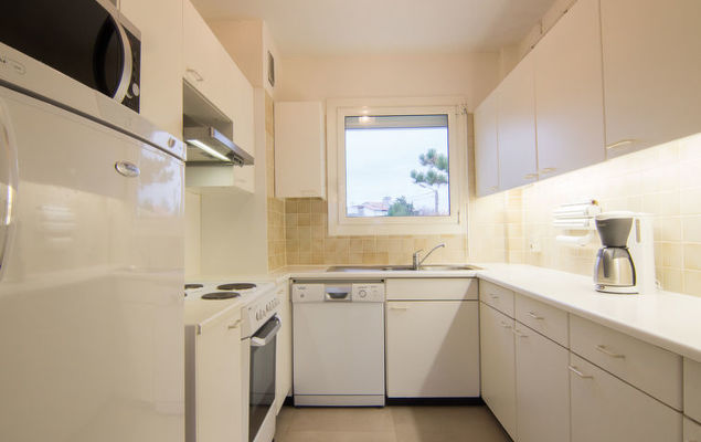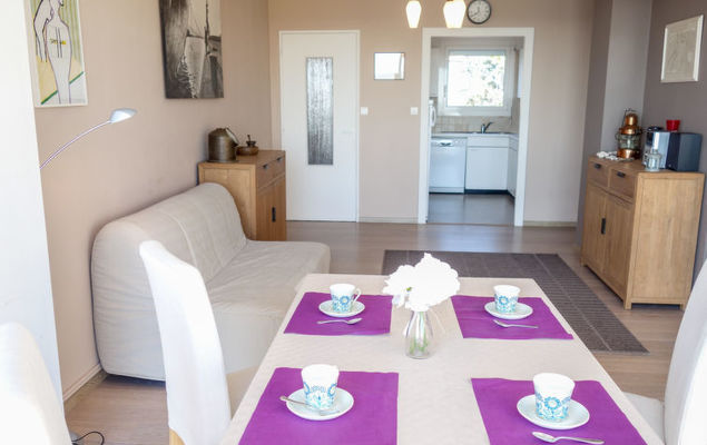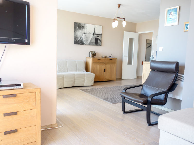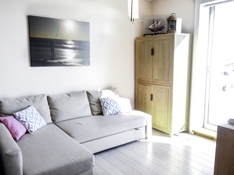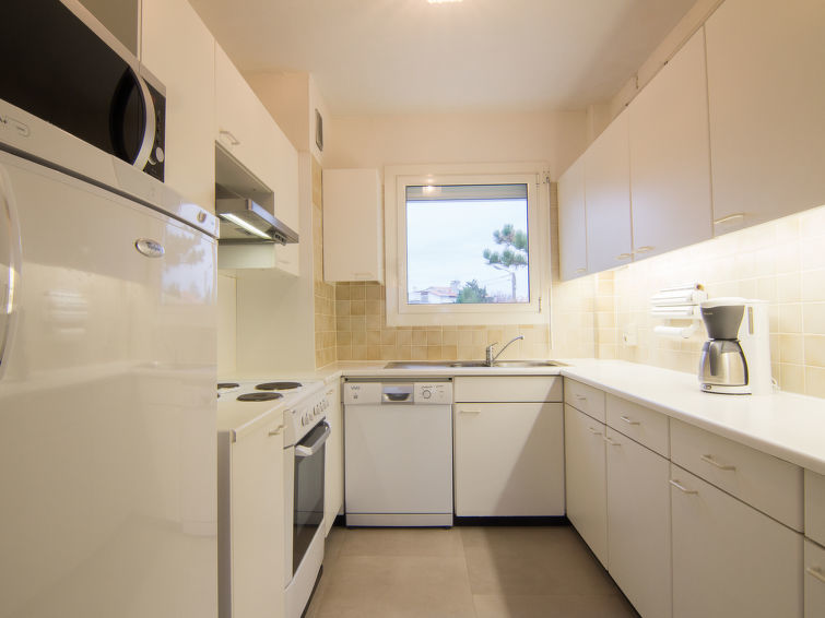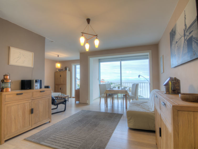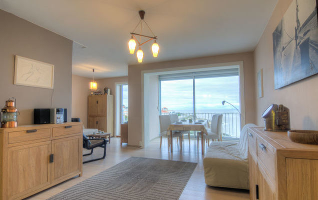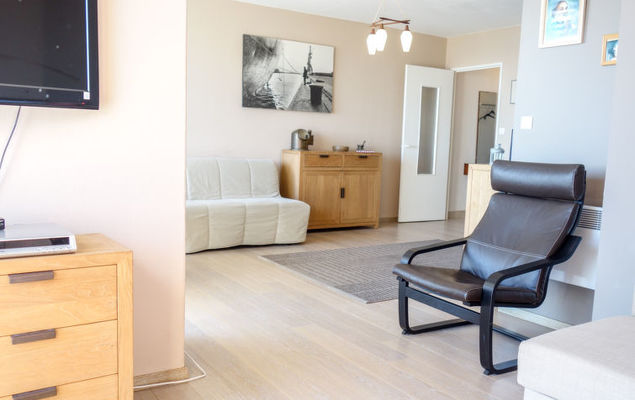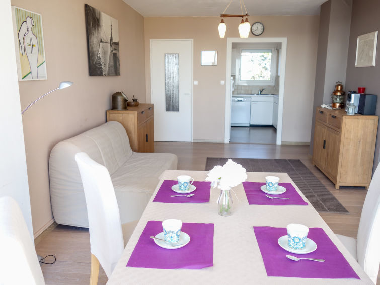 Appartement 2-kamers 48 m2 op de 2e verdieping, op het zuidwesten gelegen. Licht, comfortabel en modern ingericht: groot woon-/eetkamer met 1 2-pers divanbed (1 x 140 cm, lengte 190 cm), TV. 1 kamer met 1 2-pers bed (1 x 160 cm, lengte 190 cm). Keuken (4-pits kookplaat, oven, afwasmachine, magnetron). Douche, aparte WC. Zeer mooi uitzicht op zee. Ter beschikking: Internet (Internet (WiFi), gratis). Parkeerplaats nr. 55. Let op: rookmelders.