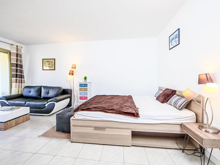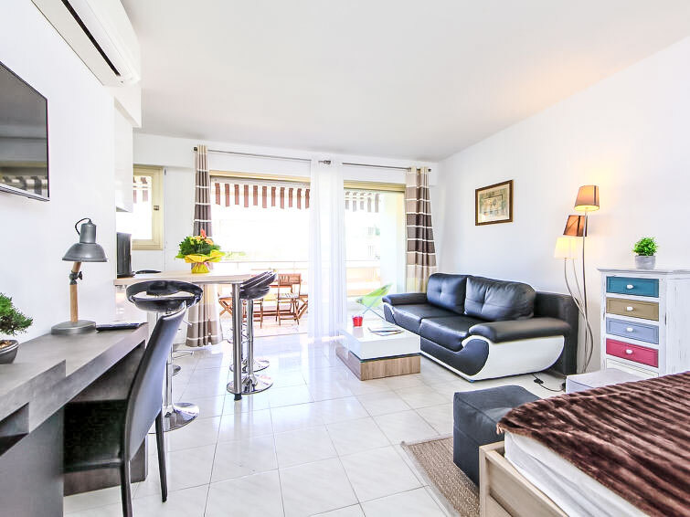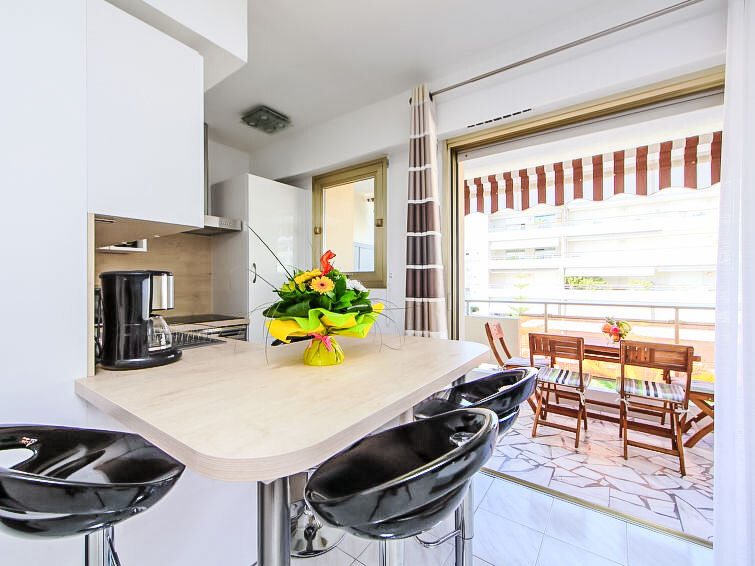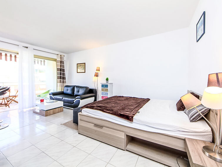 Appartement 1-kamer 27 m2 op de 4e verdieping. Volledig gerenoveerd in 2016, zeer mooi ingericht: woon-/eetkamer met 1 2-pers bed (160 cm, lengte 190 cm), TV (Flatscreen TV), air-conditioning. Uitgang naar het terras. Open keuken (oven, afwasmachine, 3 inductiekookplaten, magnetron, diepvriezer, elektrische koffiemachine). Douche/WC. Heteluchtverwarming. Terras 8 m2. Terrasmeubelen. Ter beschikking: wasmachine. Internet (Internet (WiFi), extra). Rookmelders. 06029004080HT