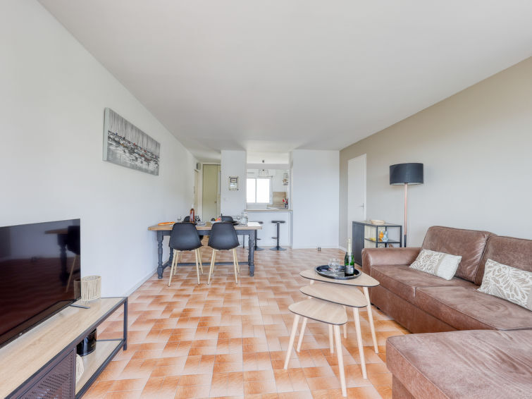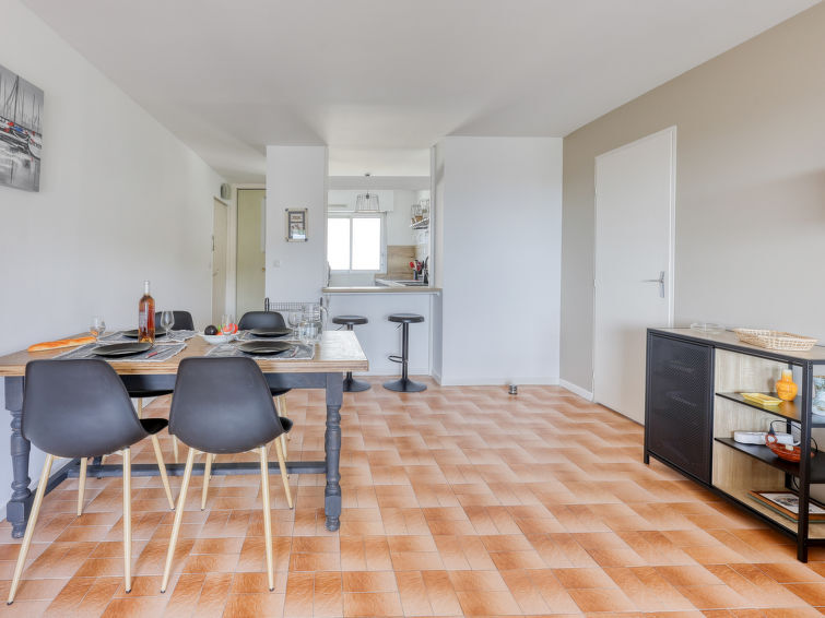 Appartement 3-kamers 50 m2 op de 2e verdieping. Comfortabel en mooi ingericht: woon-/eetkamer met TV (Flatscreen TV), air-conditioning. Uitgang naar het terras. 1 kamer met 1 2-pers bed (1 x 140 cm, lengte 190 cm), air-conditioning. 1 kamer met 2 bedden (80 cm, lengte 190 cm). Open keuken (afwasmachine, 3 inductiekookplaten, broodrooster, waterkoker, magnetron, elektrische koffiemachine, pads voor de koffiemachine (Nespresso) extra). Douche, aparte WC. Heteluchtverwarming. Terras 15 m2. Terrasmeubelen. Zijdelings uitzicht op zee. Ter beschikking: wasmachine, strijkijzer. Internet (WiFi, gratis). Parkeerplaats nr. 680. 1 klein huisdier/hond toegestaan. TV alleen FR. Rookmelders. Aanbod door een particulier volgens art. 155, IV van CGI. 1302800273713