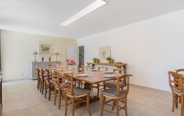 "La Machotte (VSN160)", 9-kamers cottage 270 m2 op 2 verdiepingen. Ruim, volledig gerenoveerd in 2016, comfortabel en smaakvol ingericht: woonkamer met Sat-TV en DVD. Uitgang naar het terras. Eetkamer met eettafel. Uitgang naar het terras. 1 kamer met 1 2-pers bed (160 cm, lengte 200 cm), douche/WC. Woon-/eetkamer met eethoek en kookhoek. Uitgang naar het terras. 2 kamers, elke kamer heeft 1 2-pers bed. Open keuken (oven, afwasmachine, 5 keramische glas kookplaten, broodrooster, waterkoker, magnetron, diepvriezer, elektrische koffiemachine). 2 douches, 3 aparte WC's. Bovenverdieping: (trap zonder leuning) woonkamer met Sat-TV. 1 kamer met 1 2-pers bed (160 cm, lengte 200 cm), douche/WC. 1 kamer met 2 bedden (90 cm, lengte 190 cm), douche/WC en dubbele wastafels. 1 kamer met 2 bedden (90 cm, lengte 190 cm). 1 kamer met Kleedkamer met 1 2-pers bed (160 cm, lengte 200 cm), bad/WC. 1 kamer met 2 bedden (90 cm, lengte 190 cm), douche/WC. Elektrische verwarming. Terras 80 m2. Terrasmeubelen, barbecue, ligstoelen, bergruimte. Ter beschikking: wasmachine, droger, kinderstoel, kinderbed. Internet (Internet (WiFi), gratis). Let op: rookvrij huis. Geen interne verbinding tussen de aparte wooneenheden. Als er minder dan het maximale aantal gasten in de accommodatie verblijft, zijn niet alle wooneenheden beschikbaar voor gebruik. Als er minder dan het maximale aantal gasten in de accommodatie verblijft, zijn niet alle slaapkamers beschikbaar voor gebruik.