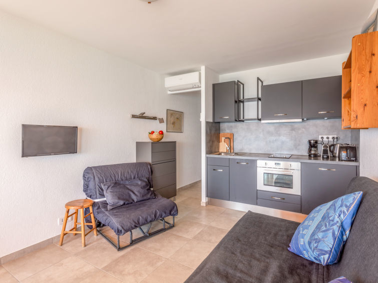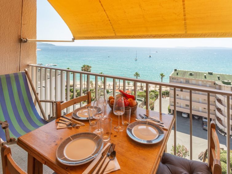 Studio 1-kamer 20 m2 op de 8e verdieping. Volledig gerenoveerd in 2020, doelmatig en mooi ingericht: woon-/eetkamer met 1 divanbed (80 cm, lengte 190 cm), 1 2-pers divanbed (140 cm, lengte 200 cm), TV, Flatscreen TV, elektrische verwarming en air-conditioning. Uitgang naar het balkon. Open keuken (oven, afwasmachine, 2 keramische glas kookplaten, broodrooster, waterkoker, magnetron, diepvriezer, elektrische koffiemachine). Douche/WC. Verwarming. Klein balkon 3 m2, op het zuiden gelegen. Zeer mooi panoramazicht op zee, de tuin, de haven en de baai. Ter beschikking: wasmachine, strijkijzer, haardroger. Internet (Internet (WiFi), extra). Parkeerplaats (omheind). Maximaal 1 huisdier/hond toegestaan. TV alleen FR. Rookmelders. 83070 001042 ZM
