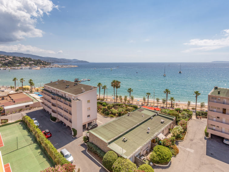 Residentie "Les Horizons", van 8 verdiepingen. Aan de rand van de plaats Lavandou, centrale ligging, gebied met weinig verkeer, 50 m van zee, de straat oversteken, directe toegang tot het strand. Voor medegebruik: verzorgde tuin planten en bloemen. Tennisbaan (extra), jeu de boules. In het huis: lift, bergruimte voor fietsen. Parkeerplaats (beperkt aantal), openbare parkeerplaatsen 50 m. Winkel, levensmiddelenwinkel 100 m, supermarkt 250 m, restaurant, bar 50 m, bakkerij 150 m, café 50 m, fietsverhuur 450 m, centrum te voet bereikbaar in 10 minuten, bushalte "Lavandou Gare routière" 500 m, zandstrand "L'Anglade" 50 m. Jachthaven 1 km, golfterrein (18 holes) 16 km, zeilschool 900 m, tennis 100 m, midgetgolf 700 m, kinderspeelplaats 700 m. Attracties in de buurt: Magic World 26 km, Parc Olbius Riquier 22 km, Saint Tropez 40 km, Le Jardin des Méditerranées 15 km. Wandelgebied Sentier du littoral 3 km. Gesloten residentie met een elektrische deur. De sleuteloverdracht vindt plaats bij het agentschap Interhome in Le Lavandou.