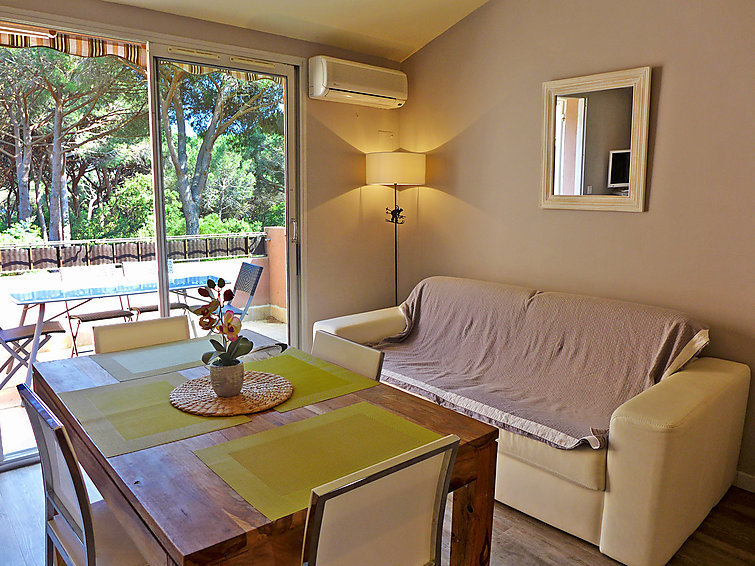Mooi residentie "Le Thalassa 1", van 2 verdiepingen. Domaine des Myrtes, in de wijk La Croisette, aan de rand van de plaats, 800 m van het centrum van Sainte Maxime, in een woonwijk, 200 m van zee, 200 m van het strand. Voor medegebruik: park 2 ha, openluchtzwembad (7 x 15 m, 100 - 190 cm diepte, seizoensgebonden beschikbaarheid: 01.Mei.-15.Okt.). Kinderzwembad, tennisbaan, parkeerplaats (beperkt aantal). Winkel, levensmiddelenwinkel 600 m, supermarkt 2 km, winkelcentrum 2 km, restaurant 300 m, café 600 m, station "Saint-Raphael TGV" 20 km, zandstrand "la Croisette" 200 m, park "Jardin Botanique" 50 m, thermaalbad "Thalasso Les Issambres" 7 km. Jachthaven 2 km, golfterrein (18 holes) 5 km, tennis 50 m. Attracties in de buurt: Aqualand waterpark 5 km, Azur park attractions 16 km, Saint-Tropez/Ramatuelle 16 km, Port-Grimaud 12 km, Gorges du Verdon 95 km, Navette / shuttle boat St-Tropez 15min 2 km. Wandelgebied Massif des Maures 5 km, Massif de l'Esterel 38 km. Let op: auto noodzakelijk. Gesloten residentie met een elektrische deur. De sleuteloverdracht vindt plaats bij het agentschap Interhome in Sainte-Maxime. Vliegveld 70 km van het huis.