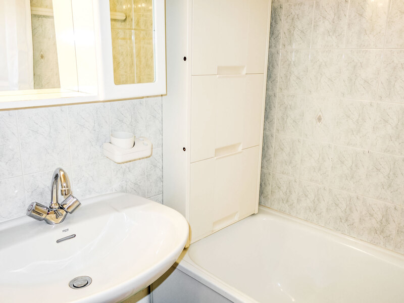 Appartement 1-kamer 20 m2 op de 1e verdieping. Woon-/eetkamer met 1 2-pers divanbed. Slaapnis met 1 x 2 stapelbedden. Kookhoek (4-pits kookplaat, mini-oven, broodrooster, waterkoker, elektrische koffiemachine) met TV. Badkamer, aparte WC. Elektrische verwarming. Balkon, op het zuiden gelegen. Ter beschikking: Internet(WiFi), extra). Rookmelders. Gebouw I. In plaats van een afgesloten slaapkamer bevinden sommige slaapgedeeltes zich in een open ruimte (galerij, nis, etc.). 740850001298Q