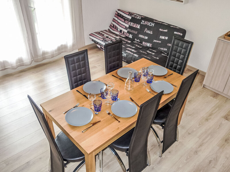 Appartement 3-kamers 60 m2 op 2 verdiepingen op de 4e verdieping. Gerenoveerd in 2015: woon-/eetkamer met 1 2-pers divanbed en TV. Kookhoek (afwasmachine, 2 keramische glas kookplaten, broodrooster, waterkoker, magnetron, elektrische koffiemachine, raclette oven). Zolderverdieping: 1 kamer, hoogte van het plafond 120 - 230 cm met 1 2-pers bed (140 cm, lengte 190 cm). 1 kamer met hoogte van het plafond 120 - 230 cm, dakraam met 2 bedden (90 cm, lengte 190 cm). Badkamer, douche/WC. Elektrische verwarming. Balkon, op het zuiden gelegen. Ter beschikking: Internet (WiFi, extra). Parkeerplaats nr. 630 (overdekt). Rookmelders. 74085000467AQ