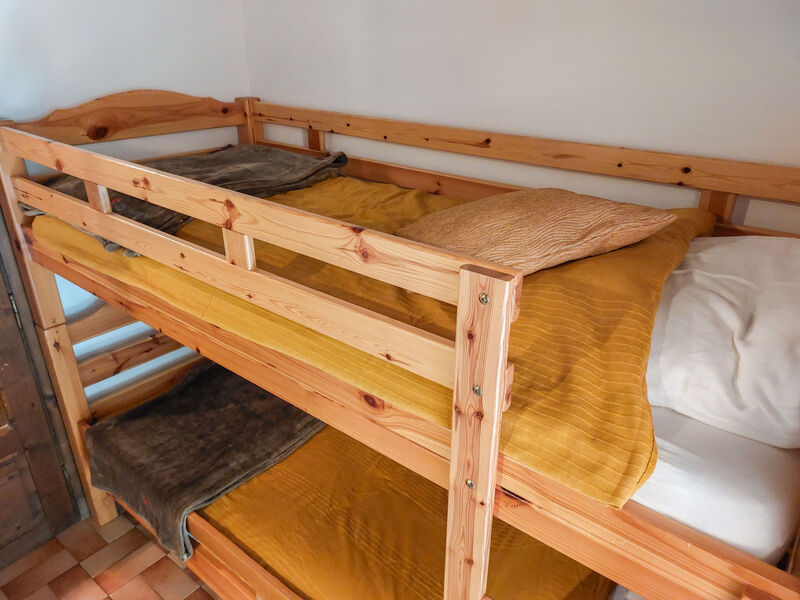 "Le Bionnassay", studio 1-kamer 30 m2 op de 1e verdieping. Hal met 1 x 2 stapelbedden (80 cm, lengte 190 cm). Woon-/eetkamer met 1 divanbed (140 cm, lengte 190 cm), eettafel en TV (Flatscreen TV). Uitgang naar het balkon. Keuken (4-pits kookplaat, mini-oven, oven, afwasmachine, broodrooster, elektrische koffiemachine, combimagnetron). Douche, aparte WC. Olie-verwarming. Klein balkon 5 m2, op het westen gelegen. Mooi panoramazicht op de bergen. Ter beschikking: Internet (WiFi, extra). Parkeerplaats (1 Auto). TV alleen FR. Rookmelders. Aanbod door een particulier volgens art. 155, IV van CGI. 74085G00719D