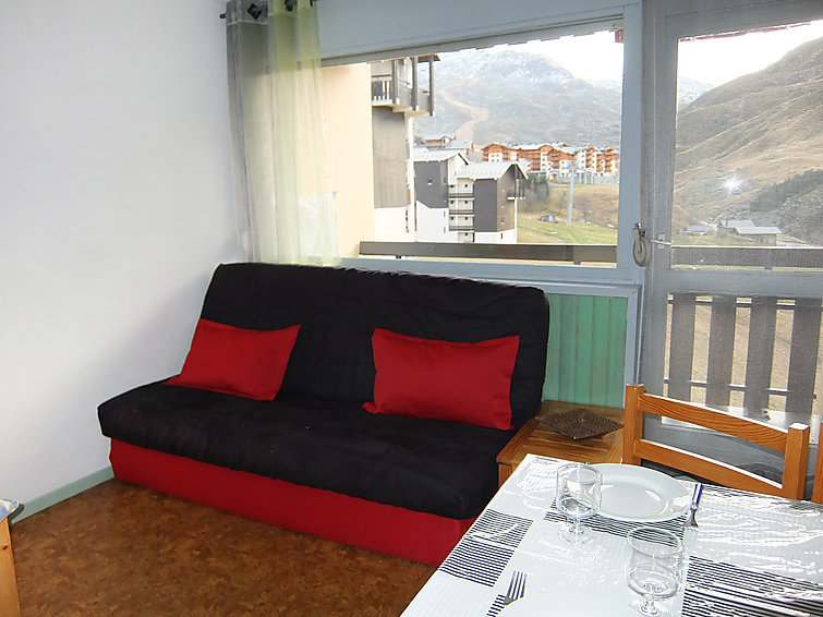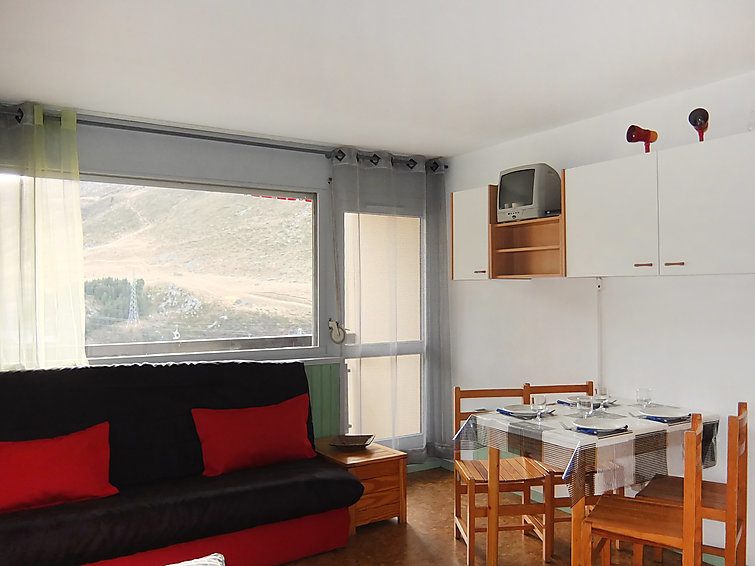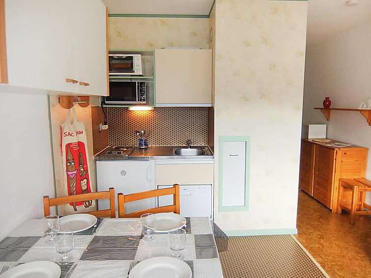 "Asters 722 Bâtiment B2", appartement 1-kamer 24 m2 op de 1e verdieping. Mooi ingericht: woon-/eetkamer met 1 2-pers divanbed (140 cm, lengte 190 cm), TV (Flatscreen TV). Uitgang naar het balkon. Cabine met 1 x 2 stapelbedden (70 cm, lengte 190 cm). Kookhoek (mini-oven, afwasmachine, 2 inductiekookplaten, waterkoker, magnetron, elektrische koffiemachine). Bad/WC. Elektrische verwarming. Balkon, op het zuiden gelegen. Mooi uitzicht op de bergen en de skipiste. Ter beschikking: Internet (Internet (WiFi), extra). Rookmelders. In plaats van een afgesloten slaapkamer bevinden sommige slaapgedeeltes zich in een open ruimte (galerij, nis, etc.). 73257003637DP