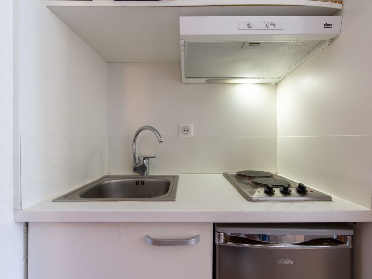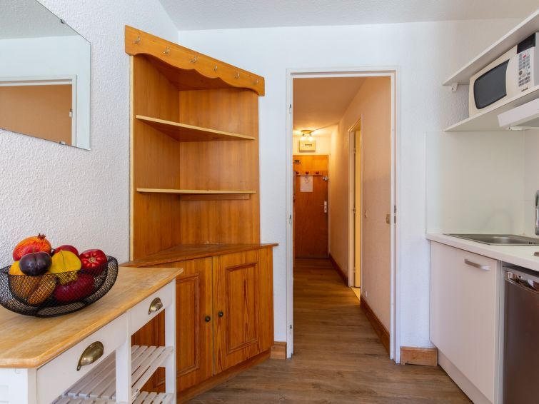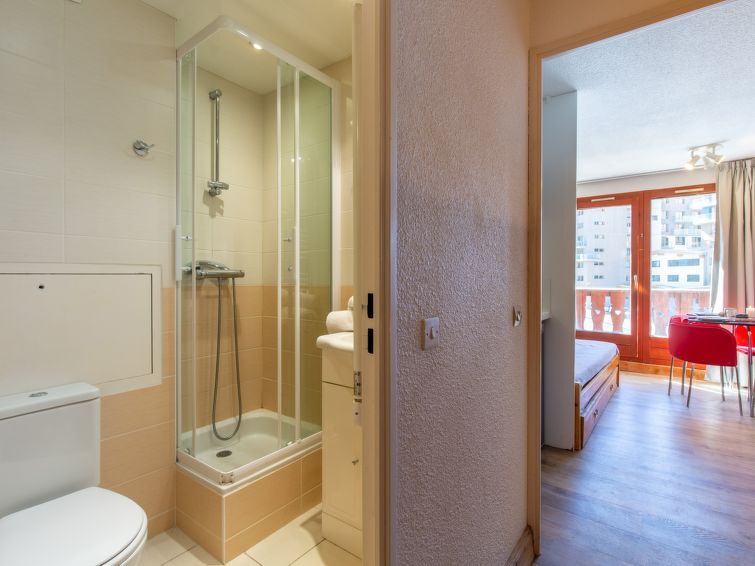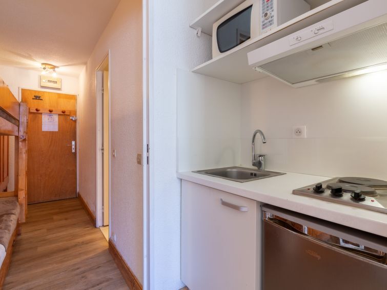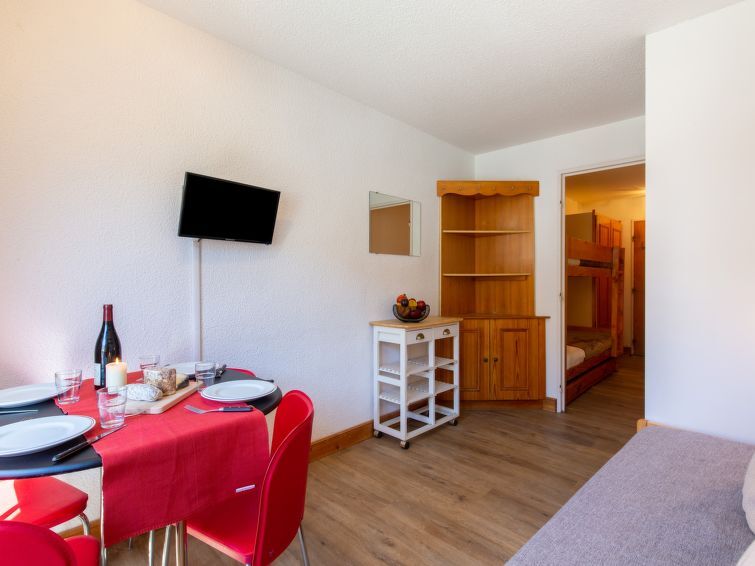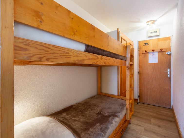 Appartement 1-kamer 17 m2 op de 3e verdieping. Gedeeltelijk gerenoveerd, mooi ingericht: woon-/eetkamer met 1 uitschuifbaar bed (2 pers. 2 x 80 cm), TV. Uitgang naar het balkon, op het zuidwesten. Hal met 1 x 2 stapelbedden (80 cm). Kookhoek (2-pits kookplaat, magnetron). Douche/WC. Elektrische verwarming. Balkon, op het zuidwesten gelegen. Uitzicht op de bergen en de skipiste. Ter beschikking: Internet (Internet (WiFi), extra). Rookmelders.