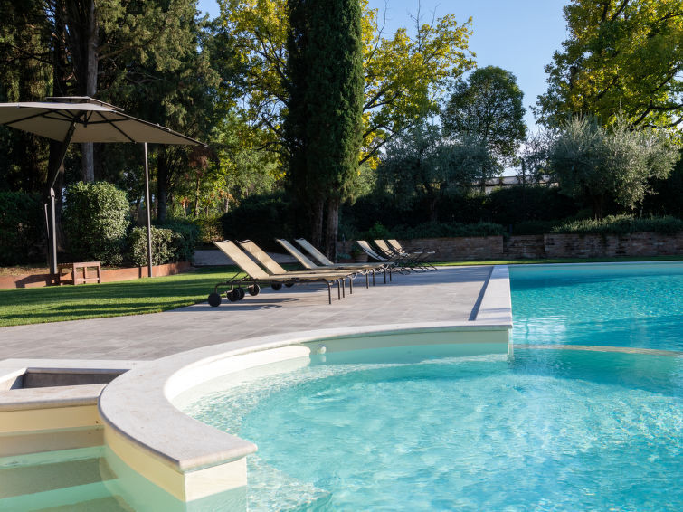Luxueuze villa "Angeli", gerenoveerd, omgeven door bomen. In het gehucht Sant'Enea, 10 km van het centrum van Perugia, rustige, zonnige ligging, 24 km van het meer, te midden van groen. Voor alleengebruik: terrein 17 ha (omheind), park, mooie tuin ter ontspanning, openluchtzwembad geen inkijk (6 x 14 m, 120 - 140 cm diepte, seizoensgebonden beschikbaarheid: 01.Mei. - 30.Sep.). Onregelmatig zwembad. Douche/WC bij het zwembad, buitendouche, prieel, tuinmeubelen, grill. In het huis: Internet (WiFi), solarium, wasmachine, droger, verwarming alleen beschikbaar van 15.Okt. - 15.Apr. (extra). Wissel van linnengoed 1 maal per week (extra wissel te betalen). Schoonmaak (extra). Kok op verzoek. Ontbijt op aanvraag. Boodschappenpakket mogelijk bij aankomst. Toegangsweg (500 m onverharde weg). Parkeerplaats. Levensmiddelenwinkel 1 km, supermarkt 8 km, restaurant 1 km, meer (zwemmen) "Trasimeno" 24 km. Golfterrein (18 holes) 13 km, tennis 10 km, manege 10 km. Attracties in de buurt: Panicale 27 km, Bevagna 30 km, Todi 33 km, Passignano sul Trasimeno 35 km, Assisi 35 km, Città Della Pieve 37 km. Groepen jongeren uitsluitend op aanvraag. Geschikt voor evenementen. Luxe villa uit de 18e eeuw gelegen in een mooi park met veel uitzichten op de omringende heuvels vol met olijfbomen. De villa heeft een eigen kapelletje, een poolhouse met een keukentje en er is een mooie plek om buiten te eten.